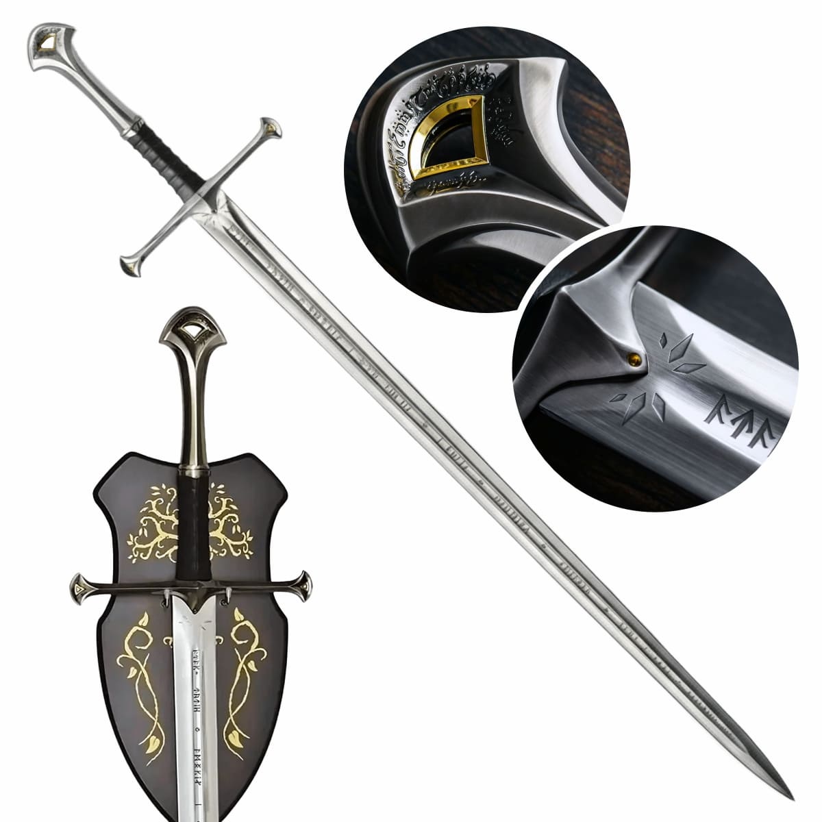 Lâmina: Longa, reta, com gravações élficas inspiradas no universo de Tolkien